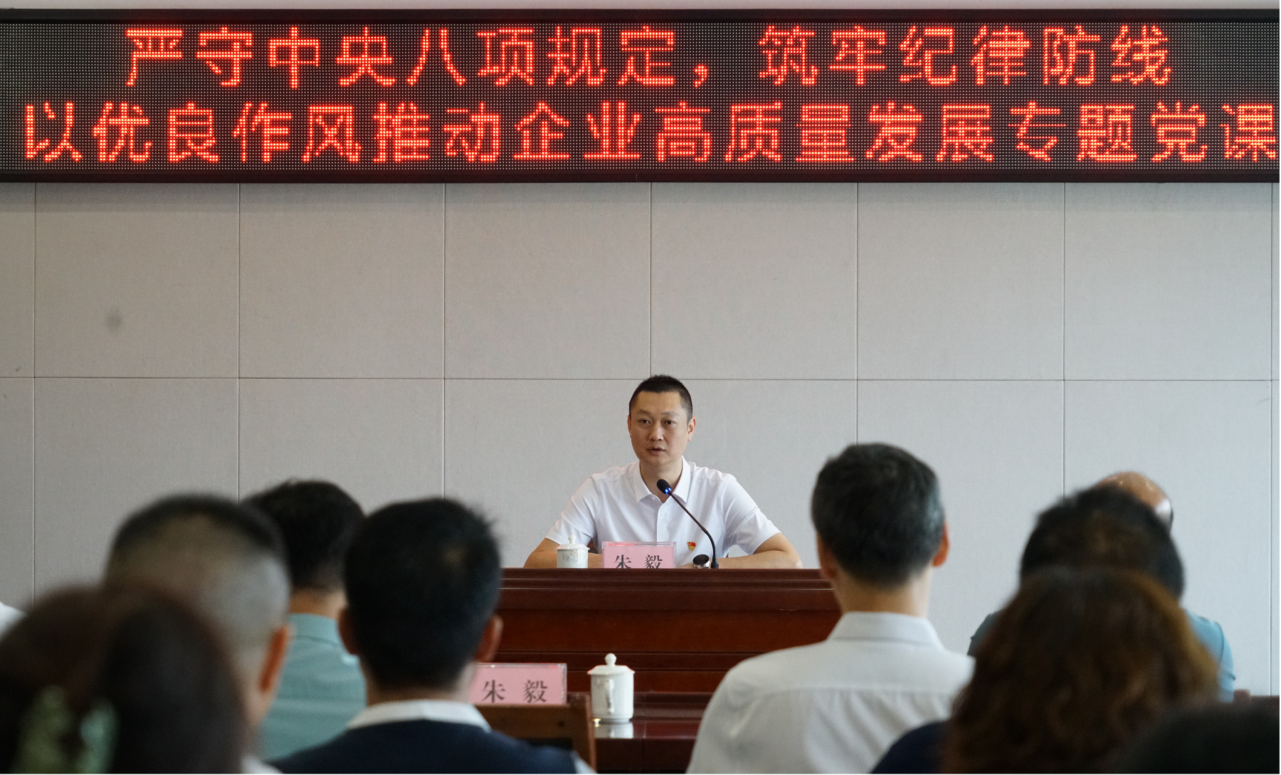 2025年7月8日,集團黨委書記、董事長朱毅同志以“嚴守中央八項規(guī)定,筑牢紀律防線,以優(yōu)良作風(fēng)推動企業(yè)高質(zhì)量發(fā)展”為題,為集體黨員干部講授專題黨課,由集團黨委副書記、紀委書記譚力源主持。此次黨課圍繞理論認知、案例警示、實踐落實三個方面展開,深入淺出地闡釋了中央八項規(guī)定精神的豐富內(nèi)涵與重要意義。