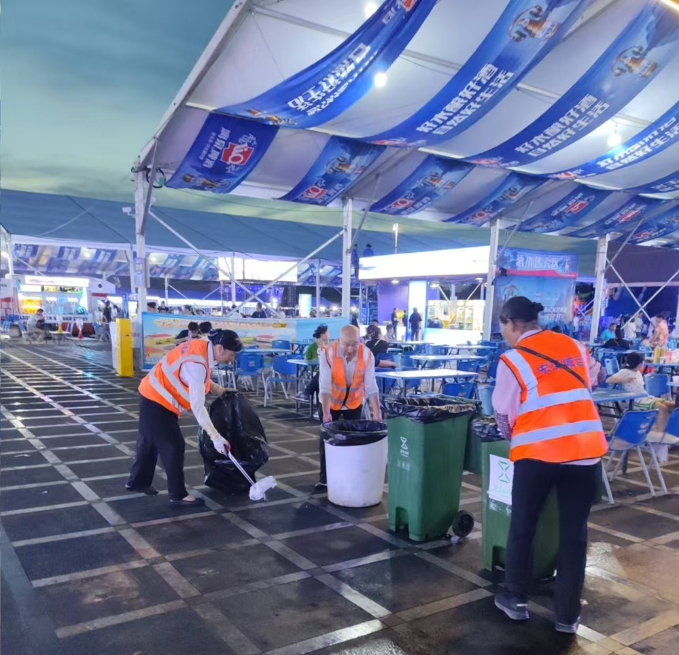 垃圾清運:13天累計清理垃圾約2600袋(日均200袋),餐飲垃圾定點清運,煙花秀廢棄物散場1小時內(nèi)清理,無堆積滯留。