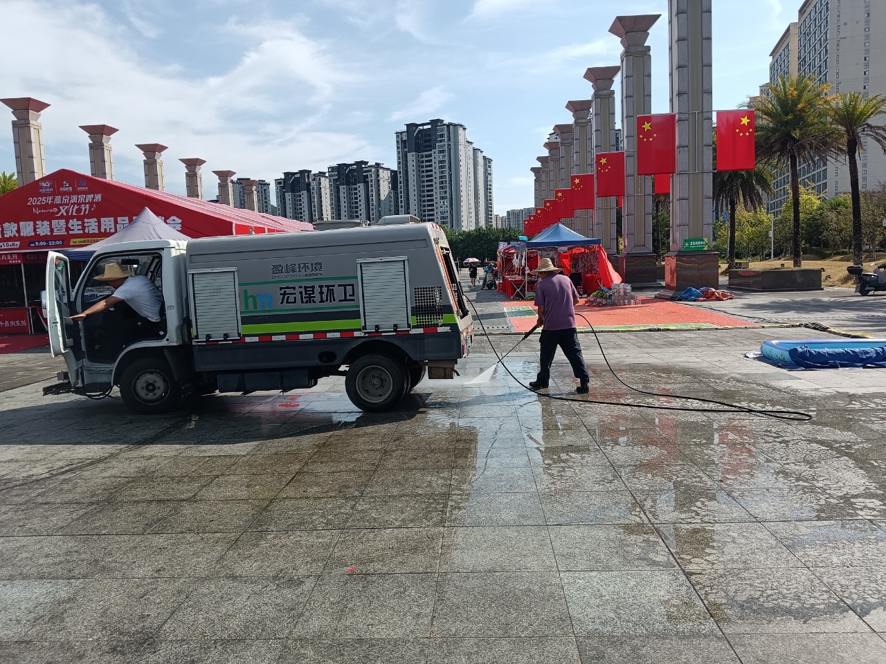 2025年9月26日至10月8日,臨桂區(qū)大型七彩煙花秀+燕京漓泉啤酒文化節(jié)在臨桂區(qū)市民廣場盛大啟幕。宏謀城運公司在新城投集團的引領(lǐng)下,以“專業(yè)保障 助力文旅”為宗旨,為這場持續(xù)13天的文旅盛宴提供了全方位、高標(biāo)準(zhǔn)的后勤保障服務(wù),確?;顒尤贪踩行?、環(huán)境整潔美觀。
